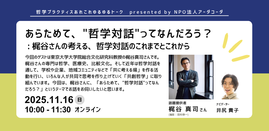などといったことについての梶谷さんのお話を入り口に、参加者の皆さんと一緒に考える時間になるといいなと思っています。️「哲学対話」という言葉を初めて聞いたという方も大歓迎です。