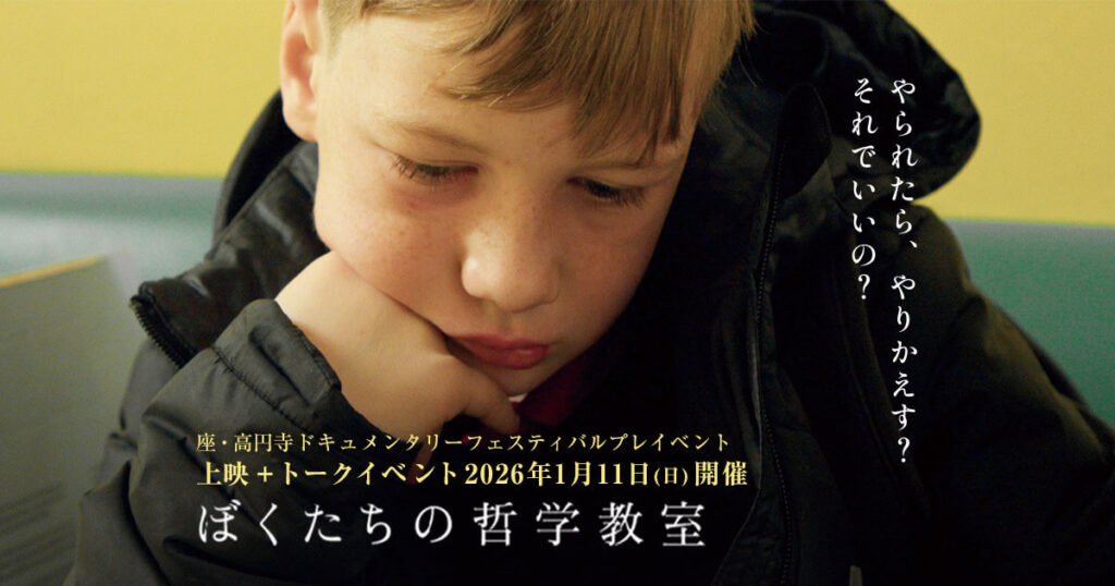 2026年2月に開催される「座・高円寺ドキュメンタリーフェスティバル」のプレイベントとして映画「ぼくたちの哲学教室」が上映され、上映後のトークイベントに代表の角田が登壇します。