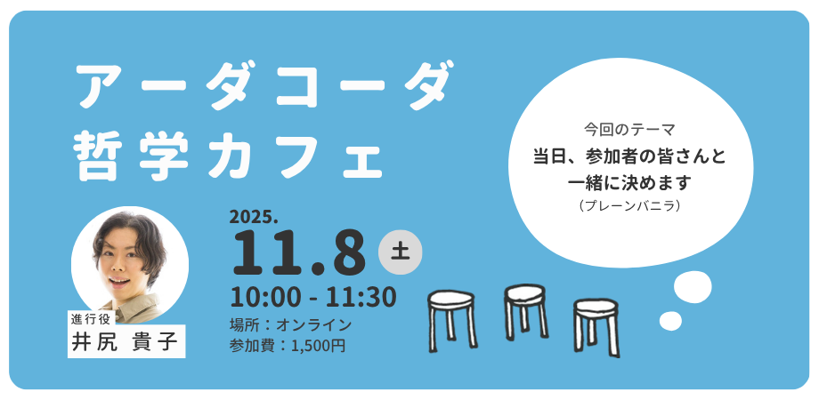 といった方々が気軽に哲学カフェ/哲学対話を体験できる場として、「アーダコーダ哲学カフェ」を偶数月に開催しています。みなさまのご参加、お待ちしています!